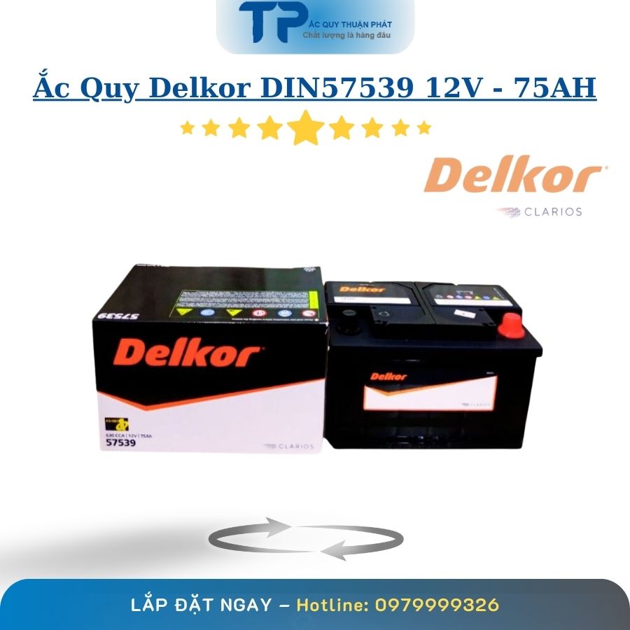 Tại TP.HCM, Thuận Phát là đại lý phân phối ắc quy Delkor DIN57539 12V – 75Ah cọc chìm chính hãng, dòng ắc quy được thiết kế theo tiêu chuẩn DIN châu Âu, chuyên dùng cho các dòng xe ô tô có nhu cầu sử dụng điện cao và yêu cầu độ ổn định lâu dài.