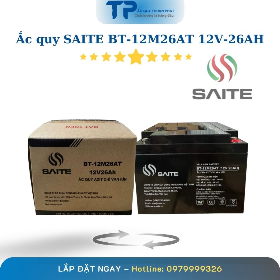 Tại TP.HCM, Thuận Phát là địa chỉ uy tín chuyên phân phối ắc quy Saite BT 12M26AT 12V – 26Ah chính hãng, cung cấp giải pháp lưu trữ điện hiệu quả cho khách hàng cá nhân, doanh nghiệp và các công trình kỹ thuật trên nhiều lĩnh vực khác nhau.